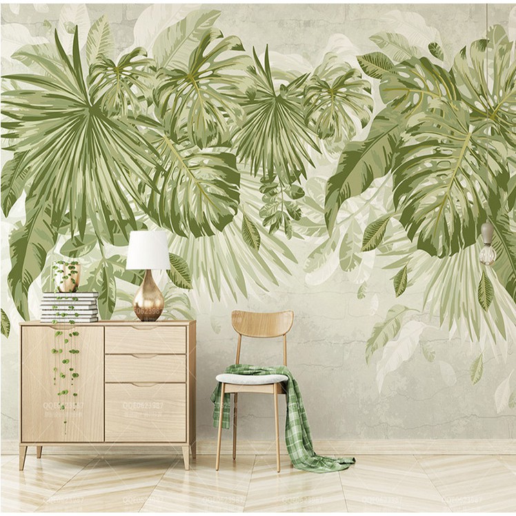 Bayar Di Tempat Green Banana Leaf 3d Living Room Bedroom Wallpaper
