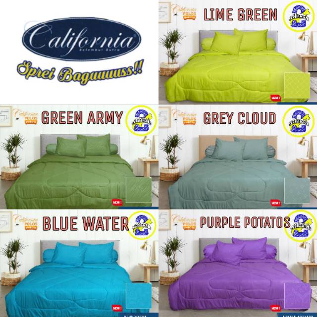 Sprei California Polos 180x200 Motif Blue Water Green Army Grey