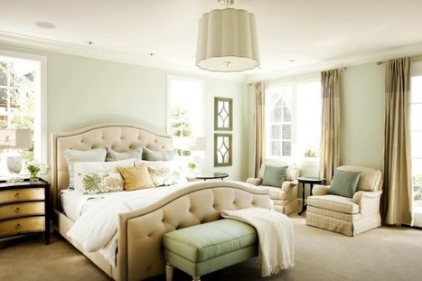 Decorating your master bedroom is important particularly because this room is your home inside your home. Very light grey sofas and green walls look cozy and family friendly. Wall color reginahong38.